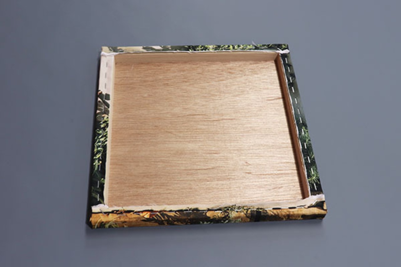 ●サイズは18×23(cm)、イラストを布に印刷し、木の枠にキャンバスの生地を留めた状態でお届けします。木の感じが温かく、軽いつくりになっているため、画鋲に引っ掛ける・両面テープを使う等、壁に飾りやすい重さとなっております。